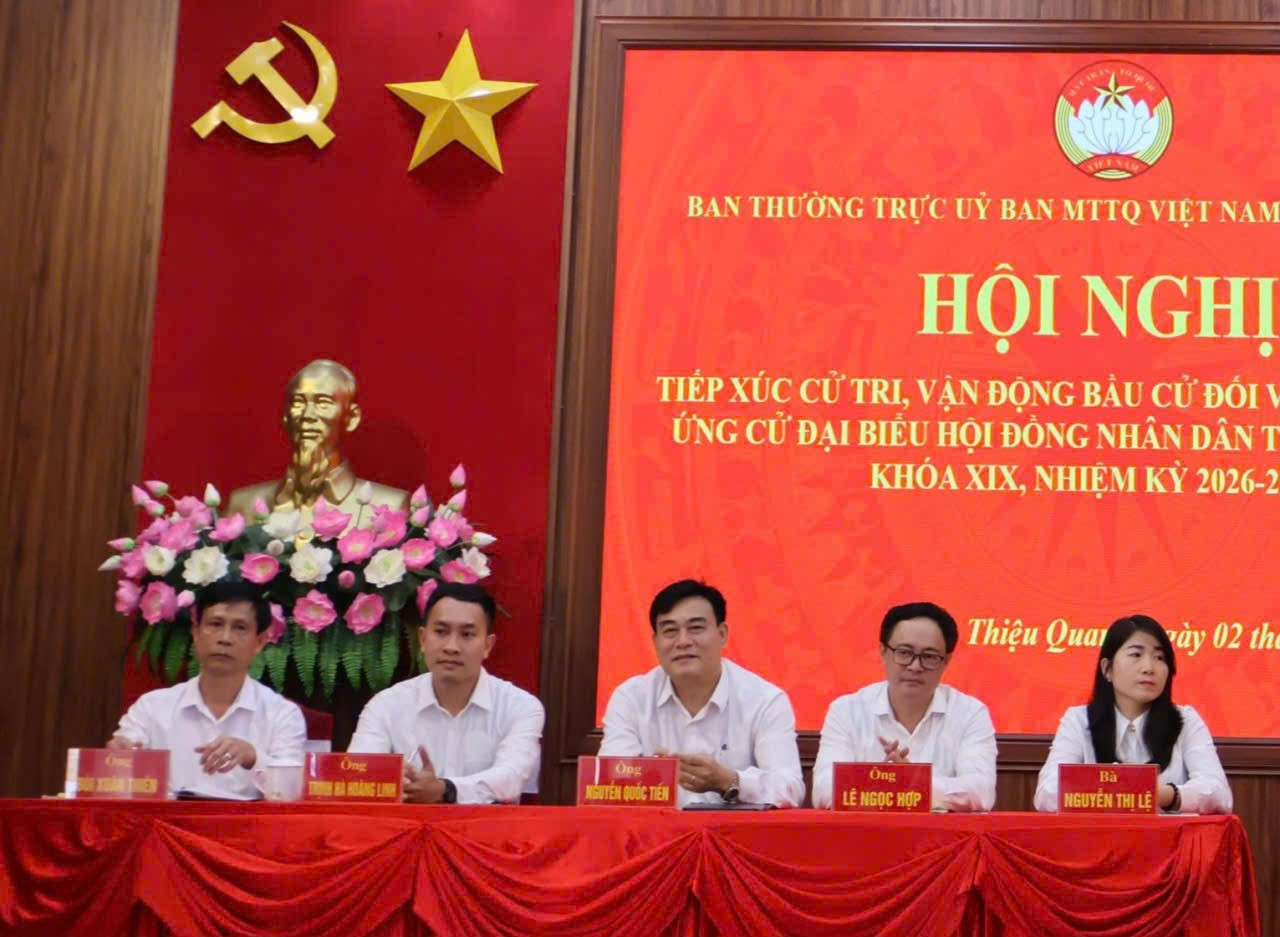 Tại hội nghị, sau khi đại diện Ủy ban MTTQ Việt Nam xã Thiệu Quang trình bày tiểu sử tóm tắt của từng ứng cử viên, các ứng cử viên đã lần lượt trình bày chương trình hành động của mình nếu được bầu làm đại biểu HĐND tỉnh khóa XIX, nhiệm kỳ 2026–2031.