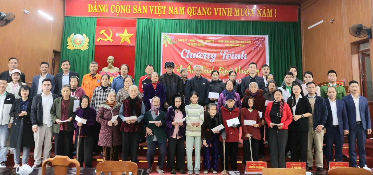 Trong không khí vui tươi, phấn khởi của những ngày đầu Xuân mới, khi toàn Đảng, toàn dân và toàn quân đang hân hoan chuẩn bị đón Tết Nguyên đán Bính Ngọ năm 2026, sáng ngày 03/02/2026, Đảng ủy – HĐND – UBND – Ủy ban MTTQ xã Thiệu Quang đã phối hợp với Ban thiện nguyện COE LAND cùng các nhà hảo tâm tổ chức Chương trình “Tết ấm tình quê hương”, trao tặng quà Tết cho các gia đình có hoàn cảnh khó khăn trên địa bàn xã.